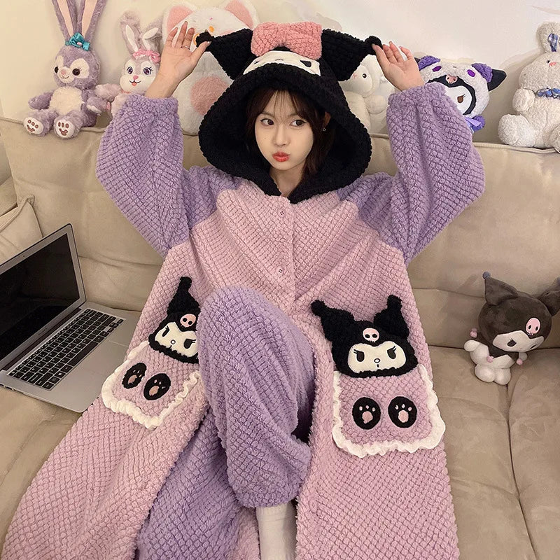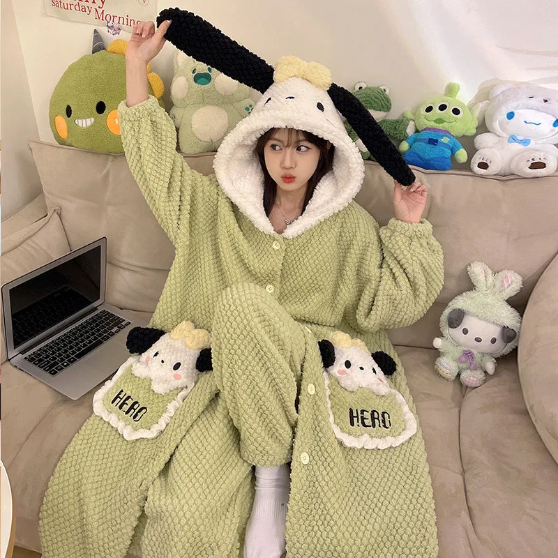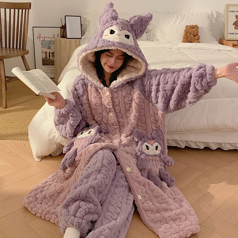 Wrap yourself in peak cozy with our Cute Plush Character Hooded Loungewear Set — the perfect mix of blanket-level softness and wearable comfort. Each design has its own little personality (ears, faces, colours, pockets), but they’re all made for the same goal: warm, cute, and ridiculously comfy.